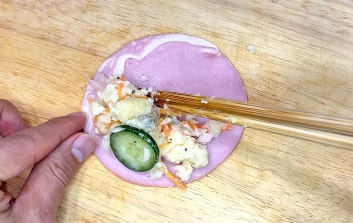 4.ポテトサラダをハムで巻く