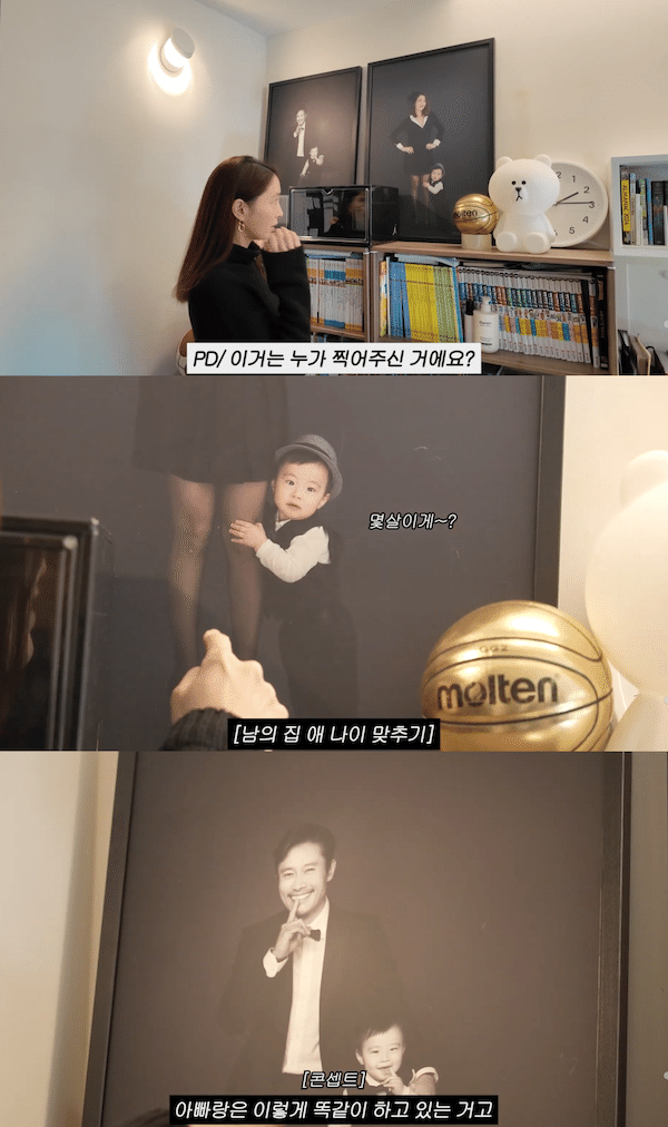 写真の中のジュヌくんは、くっきりとした目元や鮮明な口元、クリクリとした瞳まで両親にそっくりな姿だった。特に、父親である俳優イ・ビョンホンと同じポーズで撮影した写真が並んで飾られており、「瓜二つの親子」という言葉が出るほど。イ・ミンジョンも写真を見つめながら、微笑ましい笑顔を隠せなかった。