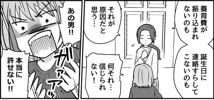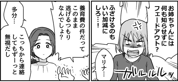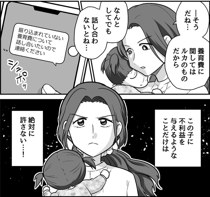 私はヒナコ。元夫のゴウには「子どもがほしいから」という身勝手な理由を告げられて離婚に至りました。しかし私は離婚する前にはすでに、ゴウの子どもを妊娠していたようです。実家に身を寄せて両親や妹のマリナに支えてもらいながら、娘のルカを出産しました。ルカが1歳半になった頃からゴウの面会は途絶え、やがて養育費も未払いに。2歳を過ぎた頃には友人から「ゴウは再婚していて、新しい奥さんとの間の子どももいる」と聞かされました。