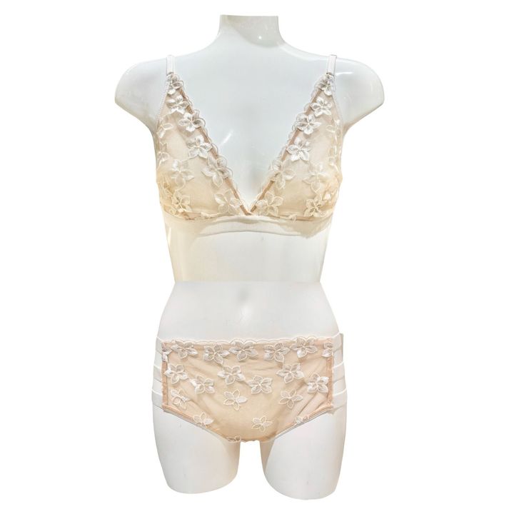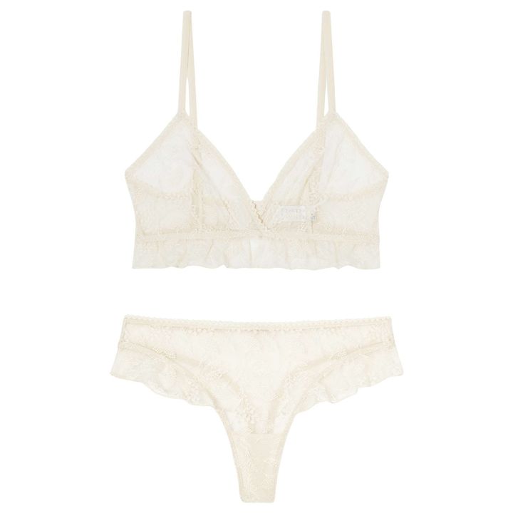レースソフトブラ¥7,480、オールレース 脇3本ストラップショーツ¥3,960/ツェルマット Hearst Owned