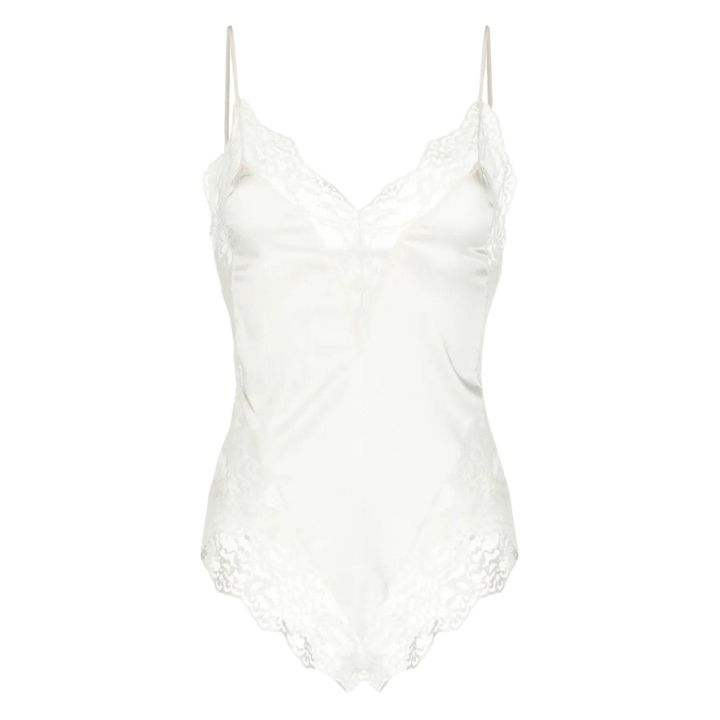 フレンチランジェリーを代表するブランドのひとつ「リズ シャルメル」。カメリアの花の刺しゅうと同じモチーフのレースを組み合わせて、洗練された透明感を表現。透かし彫りのようなレースは肌に重ねるとその美しさが増し、よりいっそう華やかに。大人の白ランジェリーにふさわしい、ヨーロピアンエレガンスを極めた逸品。