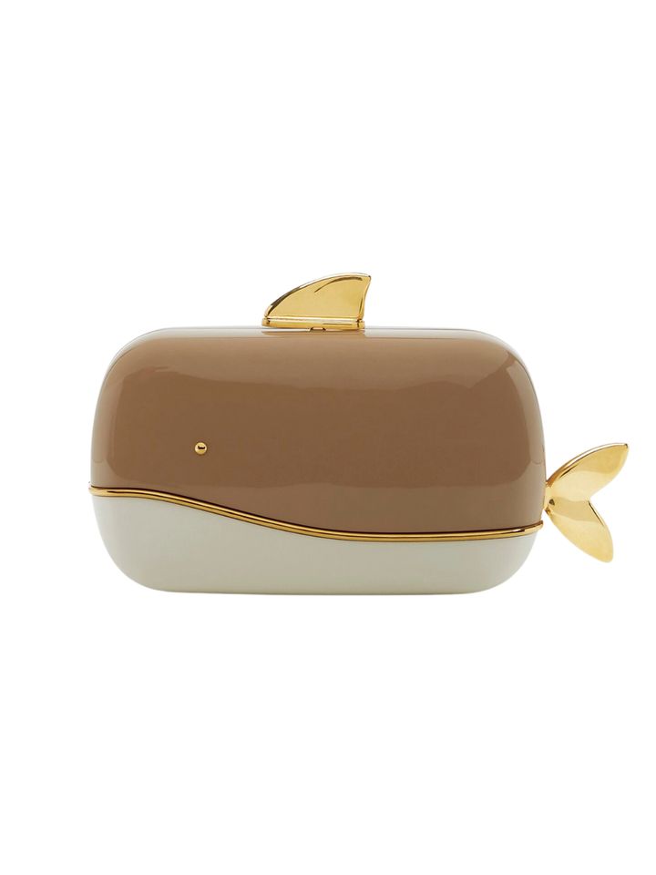 ブランドを新たに率いるルイーズ・トロッターが提案するのは、知的で自由な女性像。洗練された装いにオブジェのようなクジラのクラッチバッグを合わせ、意外性を楽しみたい。