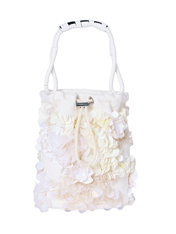 スパンコールで花を刺しゅうした、職人技が光る「バゲット」。