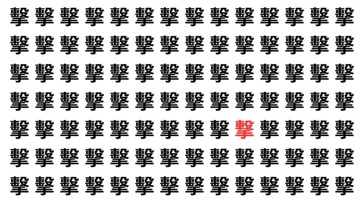 たくさんの「擊」の中に、よく似た別の漢字が1文字だけ隠れています。