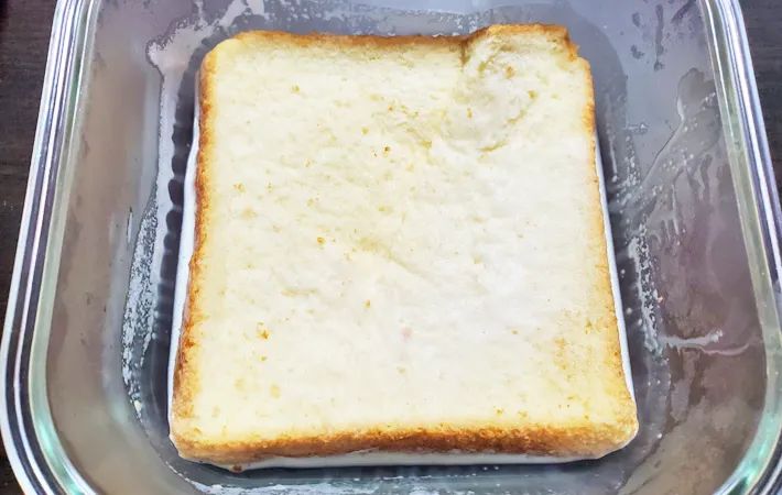 半分に切った食パンをフレンチ液に入れ、両面によく染み込ませましょう。
