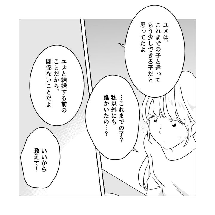 それだけではありません。「ユメは、これまでの子と違ってもう少しできる子だと思ってたよ」と誰かと比べるような発言も飛び出してきました。私以外にも誰かいたのか確認すると、結婚前のことだから関係ないと和男さんは言いました。それでも理由が聞きたくて、私は「いいから教えて!」と伝えました。