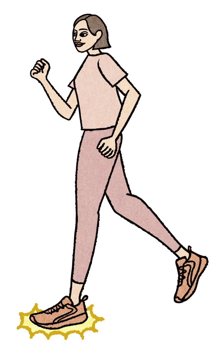 「歩行中、片脚立ちになる時間をなるべく伸ばすことを意識し、片脚にしっかりと体重を乗せて。片脚立ちの瞬間、体重の約3倍の負荷がかかるため、お尻の筋肉が効果的に鍛えられます」