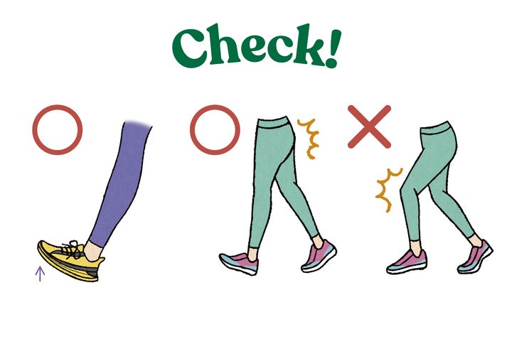 「着地するとき、脚にかかる負荷は体重の約3倍。着地時につま先が上がっていないと、この衝撃を膝で受けてしまい、膝痛の原因に。つま先を上げ、膝が伸びた状態で着地すると、お尻の筋肉で衝撃を吸収できます」(松尾さん)