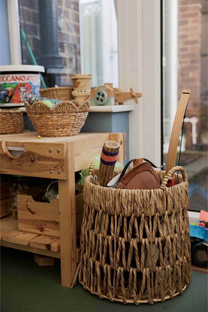 オモチャも木製のものが多く、収納する棚やかごも自然素材のものを選ぶというローラさん。「子どもの頃から自然素材のものに触れ合って欲しいという想いも込めています」