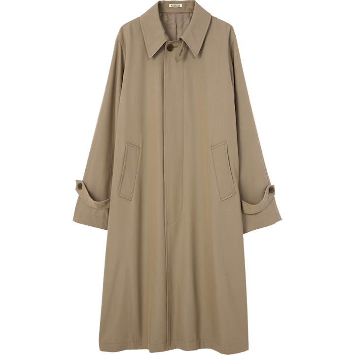 ハリのあるウール素材を使用したクラシカルなロングコート。大きな襟は取り外して着ることも可能。コート¥148,500(フェティコ/ザ・ウォール ショールーム)
