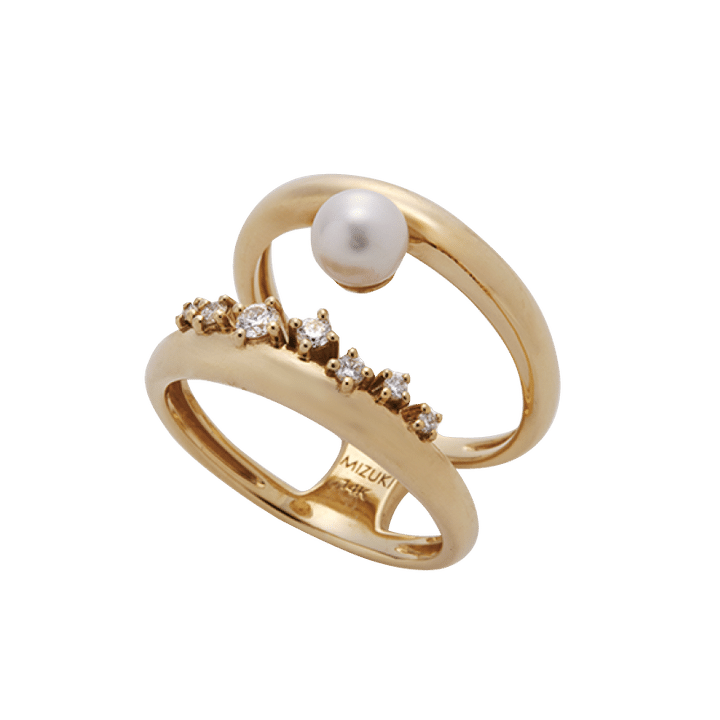 レイヤード風デザイン。リング[YG×淡水パール×DIA]¥726,000[YG×淡水パール]¥231,000(ミズキ/リトルリーグ インク)