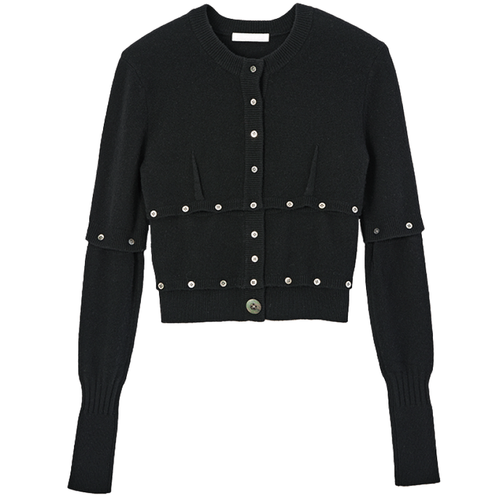 袖や裾を離してショート丈にも。カーディガン¥52,800(ケイル)
