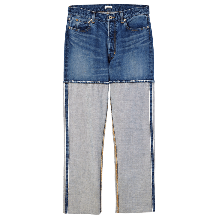 裾を股下までまくり上げた大胆なデザイン。デニムパンツ¥49,500(アンスクリア/アマン)