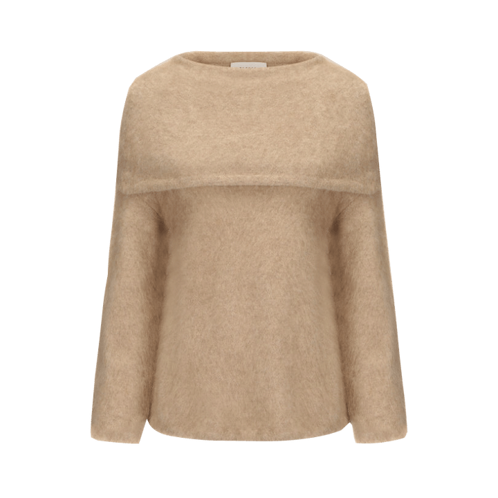 柔らかな肌触りは上質なカシミア製。オフショル風ニット¥111,000※参考価格(ルオハン/ザ・ウォール ショールーム)