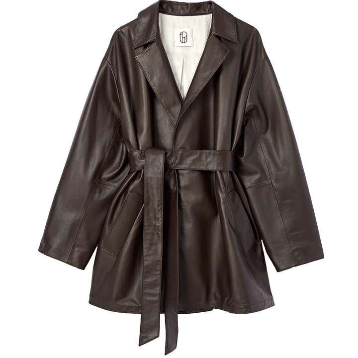 しなやかなレザーを使用したコート。オーバーサイズな仕立てはこなれた印象で着られる。レザージャケット¥165,000(インパーフ)