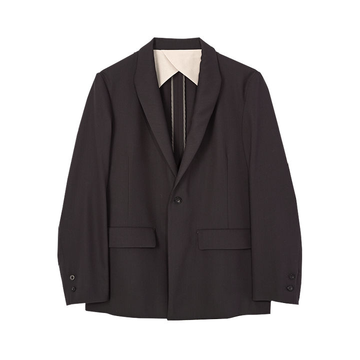 襟が二重になった立体感のある1着。ジャケット¥145,200(シュタイン/エンケル)