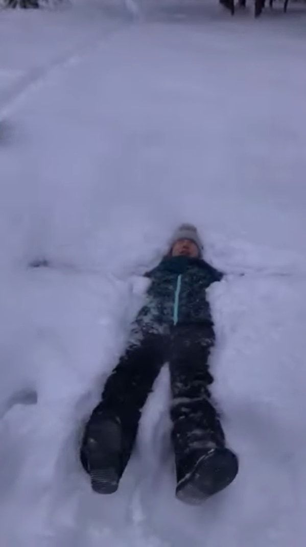 深く積もった雪に後ろ向きに倒れ込んでみた女性。 すると、次の瞬間・・・