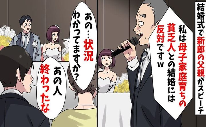 3. 義父「母子家庭育ですよ?結婚には反対です」結婚式で暴言連発。終わりですね♡騒つく会場…非道な義父の末路