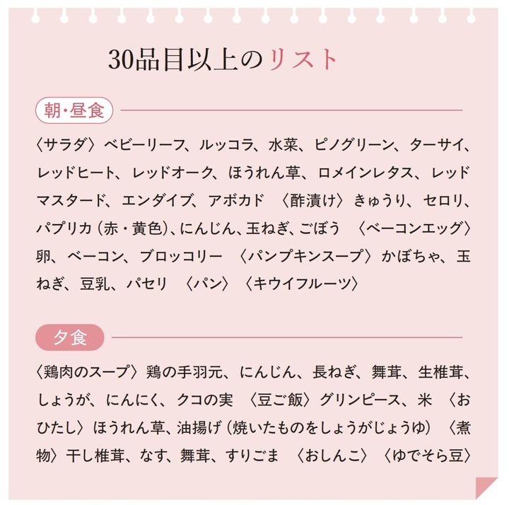 1日30品目をとることを心がけています