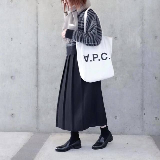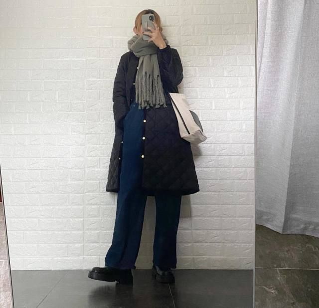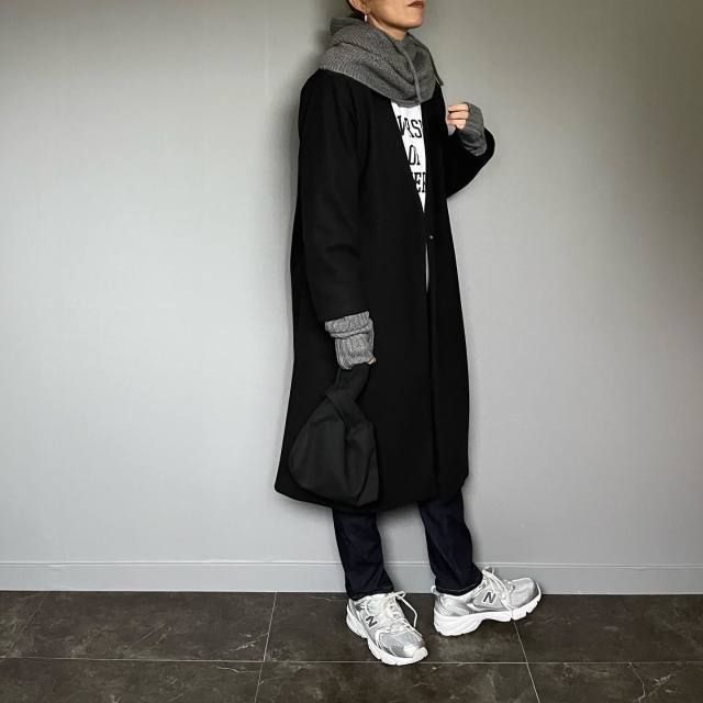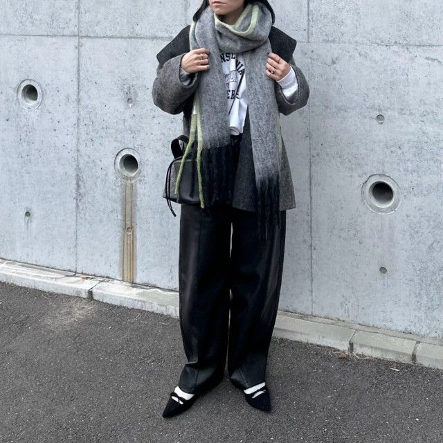 【グレーマフラーコーデ】黒っぽいアウターとの着こなし
