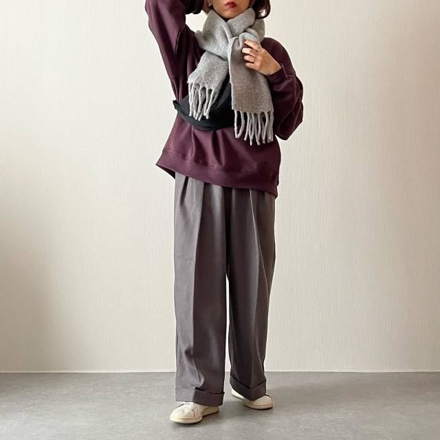 【グレーマフラーコーデ】カラートップスとの着こなし