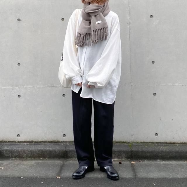 【グレーマフラーコーデ】白っぽい服との着こなし