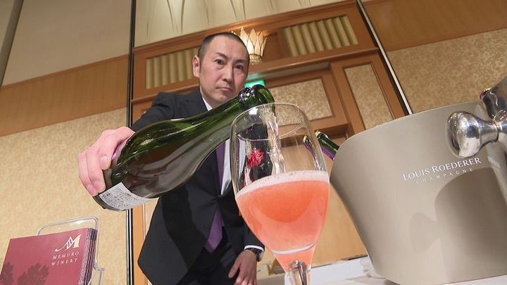 十勝の芽室町のブドウを使った色鮮やかなスパークリングワインに、オホーツクの西興部村でのびのび育った牛の生乳100パーセントのバター。