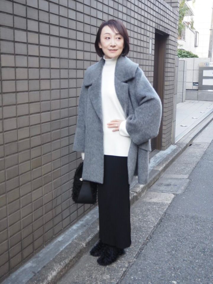 3. 【スナップ】重く見せない冬コーデはグレーが決め手!50代のきれいめモノトーン