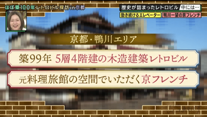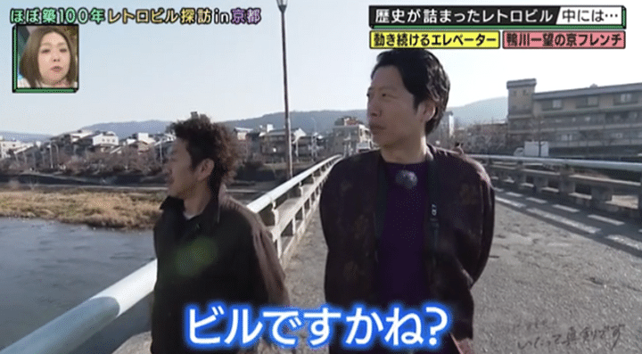 続いて訪れたのは、木屋町通りにある築99年のレトロ建築。鴨川沿いのひときわ目を引く建物は、木造ながら5層4階建ての見上げるような楼閣建築で、もとは大きな料理旅館だったとか。現在は結婚式やレセプションの会場として利用されているという館内には、なんと開館当時から現役で使われているという超レトロなエレベーターが! これに乗り込んで4階に上がった2人は、目の前に広がる思いがけない景色に「何だこれは!」と圧倒されて…。ほか、京都ならではの食材を使った贅沢フレンチも登場し、京都が誇るレトロビルの魅力を堪能!