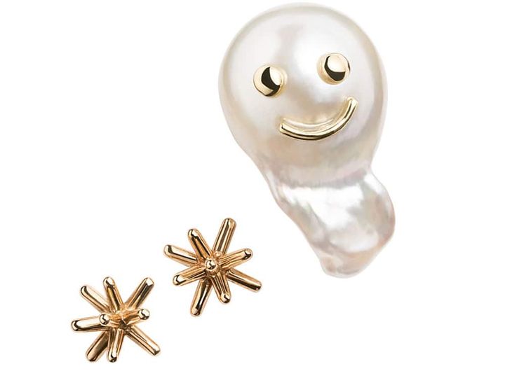 ミニオバケちゃん〈あこやバロックパール×K18YG〉¥49,500(カドー/CADEAUX六本木ヒルズ店)ピアス〈K10YG〉¥14,300(Jouete)