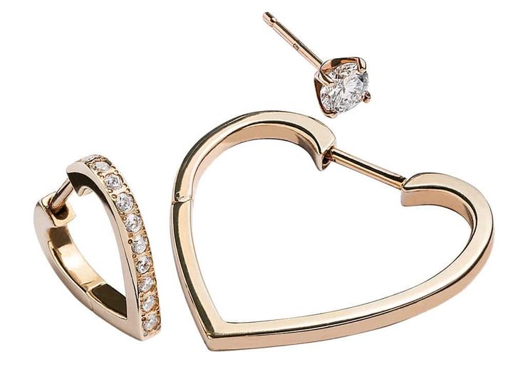 一粒ダイヤ〈K18YG×Dia〉¥266,200(片耳価格)(ビジュードエム/ビジュードエム六本木ヒルズ)「BLESS」〈Pt×Dia〉¥242,000(片耳価格) (カラットアー/イセタンサローネ東京) ミニフープ〈K18RBG×Dia〉¥59,400(ete bijoux)
