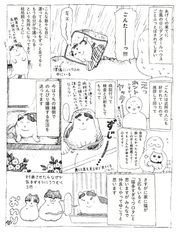 「野良猫を飼う」という決断は、責任があるからこそ簡単なものではなくて…。ごんたが庭に住んでいた時の葛藤や切なさを、気鋭の漫画家オイル富さんが等身大で描きます。
