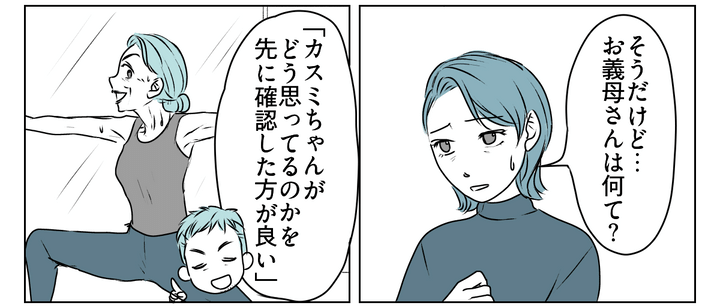 同居について義母はどう考えているのか聞くと、「カスミちゃんがどう思っているのかを確認した方が良い」と言っていたそうです。
