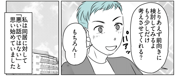 最初は驚きましたが、義母のポジティブな人柄や広い家、そして夫が提示する条件を考えると、「悪くないかも」と前向きな気持ちになれました。