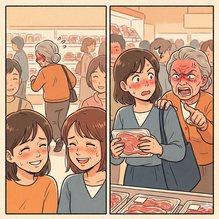 「あら、特売品を自分の目で見て選びたいのは、年齢なんて関係ありませんよ。それに、そんなにお急ぎなら、それこそご自宅まで届けてくれるネットスーパーを使われたらどうですか?とても便利ですよ」