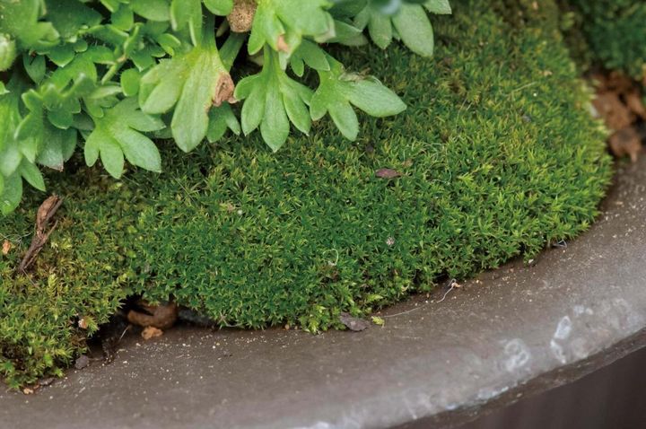 ウオータースペースを確保し、隙間にコケを張り一面を緑に。コケは乾燥しないよう、霧吹きで水を与えます。