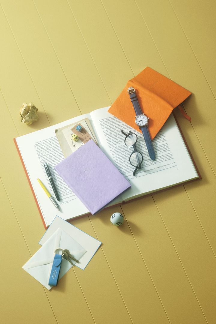 上質なレザーを使用した「スマイソン」の革小物は使い込むうちに味わいが増す。ダイアリー ¥44,000、ノート ¥15,400、カードセット ¥6,600、キーリング ¥24,200/以上ルック 事業本部