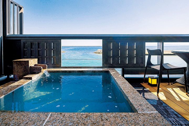『古事記』に伝わる、天の神々の居まします処「高天原(たかまがはら)」にちなんで名付けられたリゾート。全室に専有露天風呂を備えたオーシャンビューの客室では、瀬戸内海を望みながら贅沢な時間を独り占めできます。