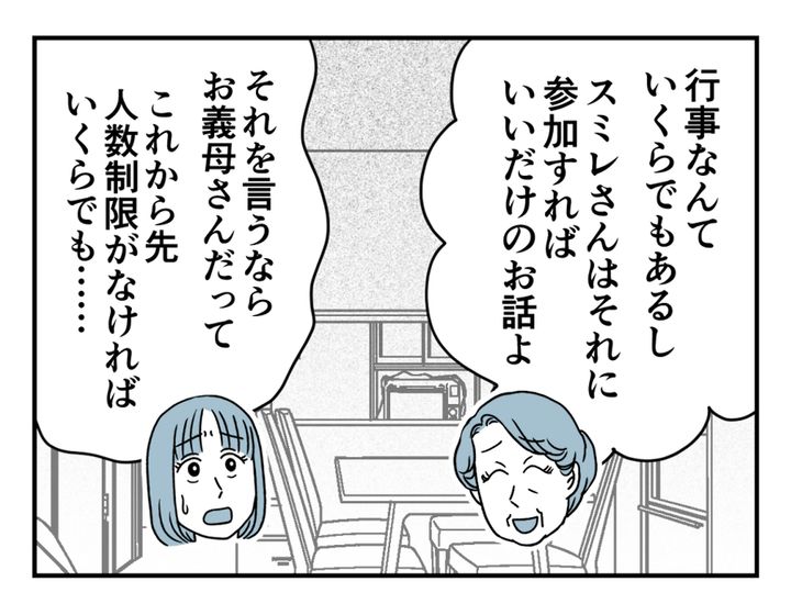 スミレさんは夫のシュンさんと、6歳の息子アユムくんを育てています。お義父さんが経営している会社をシュンさんが継ぐことになっているため、義実家の近所に居を構えています。お義母さん(サクラコ)はお嬢様育ちで、とくに着物にお金をかけるのが好きなようです。そんなある日、お義母さんは「保護者2名まで」しか出られないアユムくんの入学式へ、スミレさんの代わりに行くと言い出しました。