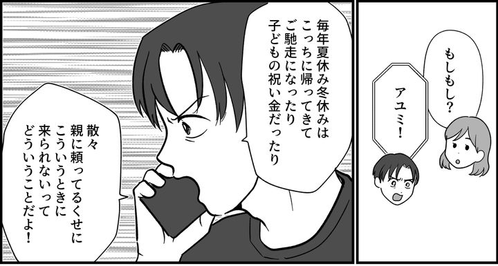 「帰省のたびにご馳走になったり、子どもの祝い金だったり散々親に頼っているくせに、こういうときに来られないってどういうこと? なにもしないんだったら、今まで親から支援してもらった分を返すべきだ」父の手術の翌日、兄から電話がありました。ものすごい剣幕で怒っています。