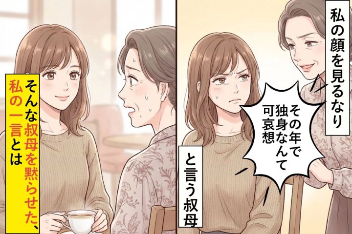 私の顔を見るなり「その年で独身なんて可哀想」と言う叔母。そんな叔母を黙らせた、私の一言とは