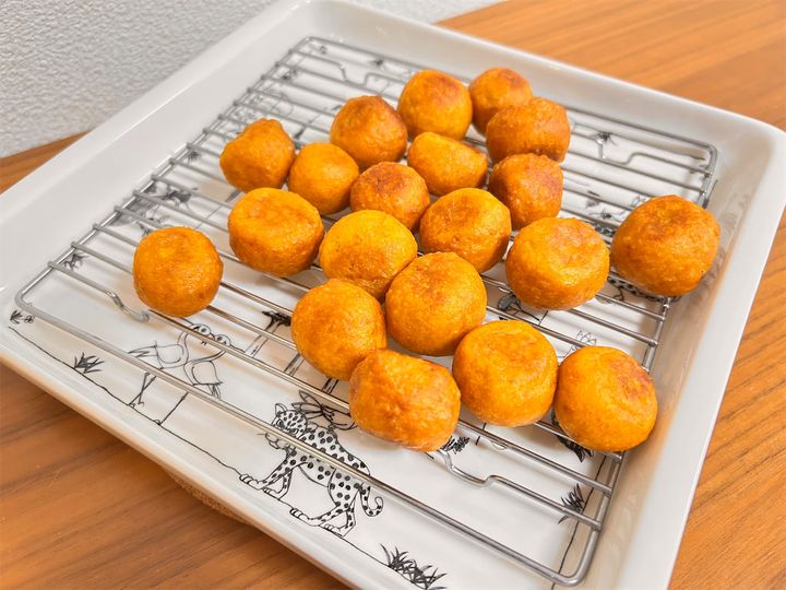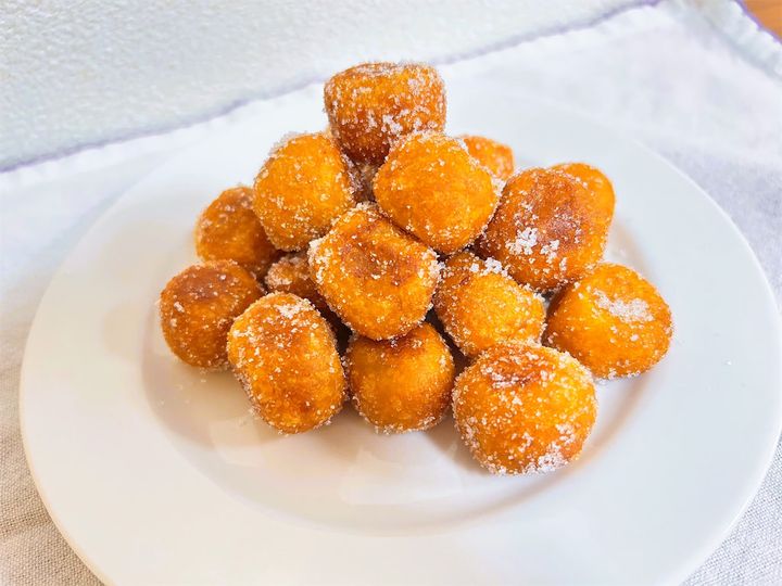 ドーナツって作るのが難しそうなイメージがありましたが、こちらのレシピのように小ぶりに丸めて作ると、とっても簡単でした。これからはこのためにかぼちゃを買いたいくらいです。