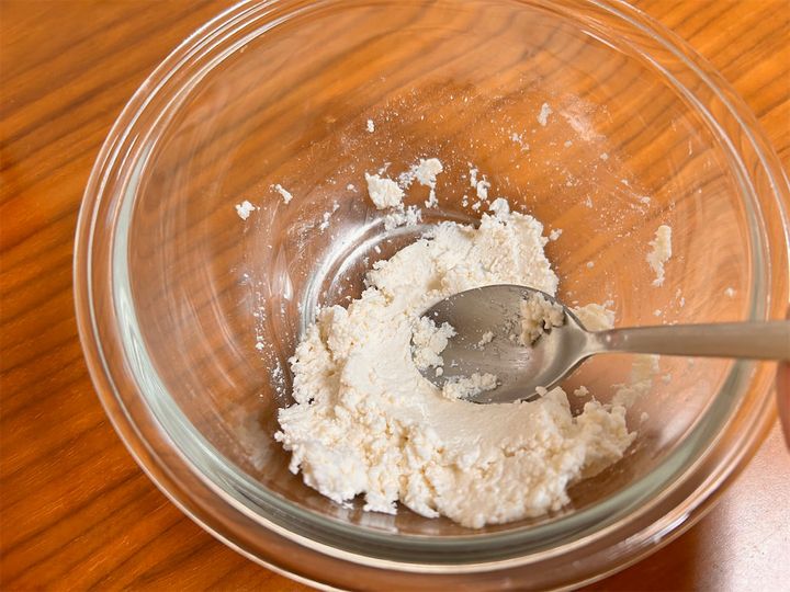 2. 別のボウルに[B]を入れ、白玉粉のダマができないように滑らかになるまで練り混ぜる。