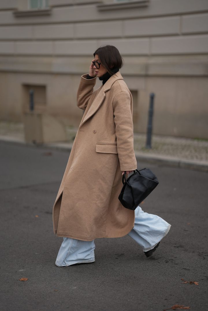 いつものコートスタイルに、トートバッグではなく小ぶりなハンドバッグを合わせるだけで、今どき感がぐっとアップ。「COS」の