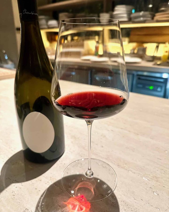 鹿と合わせたのは、ウォヴォ・カベルネ・ネッビオーロ 2022。グラスはドイツの名門シュピゲラウを使用。