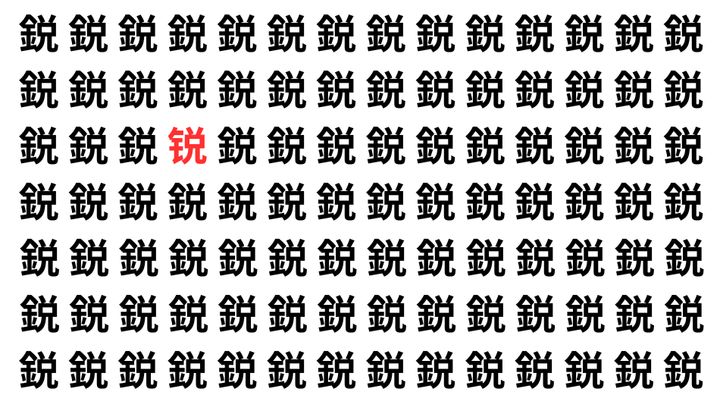たくさんの「鋭」の中に、よく似た別の漢字が1文字だけ隠れています。