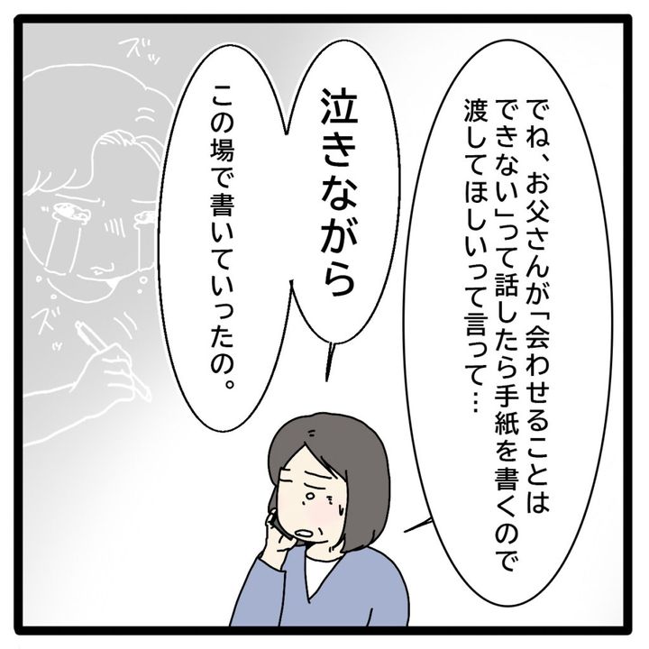 さらに、「でね、お父さんが『会わせることはできない』って話したら、手紙を書くので渡して欲しいって言って・・泣きながら、この場で書いていったの」とお母さんが言いました。