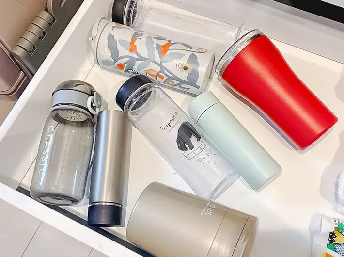 家族が多い我が家では、引き出しの中で水筒やタンブラーがごちゃごちゃになりがち。