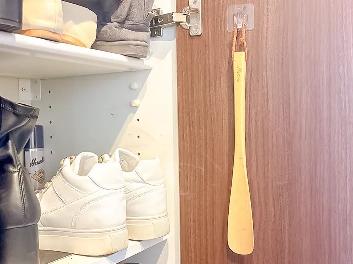 いつも使いたい時に見つかりにくい靴ベラを引っかけて、定位置を作りました!