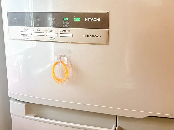 冷蔵庫につければ、散らかりがちな輪ゴムもかけておけます。